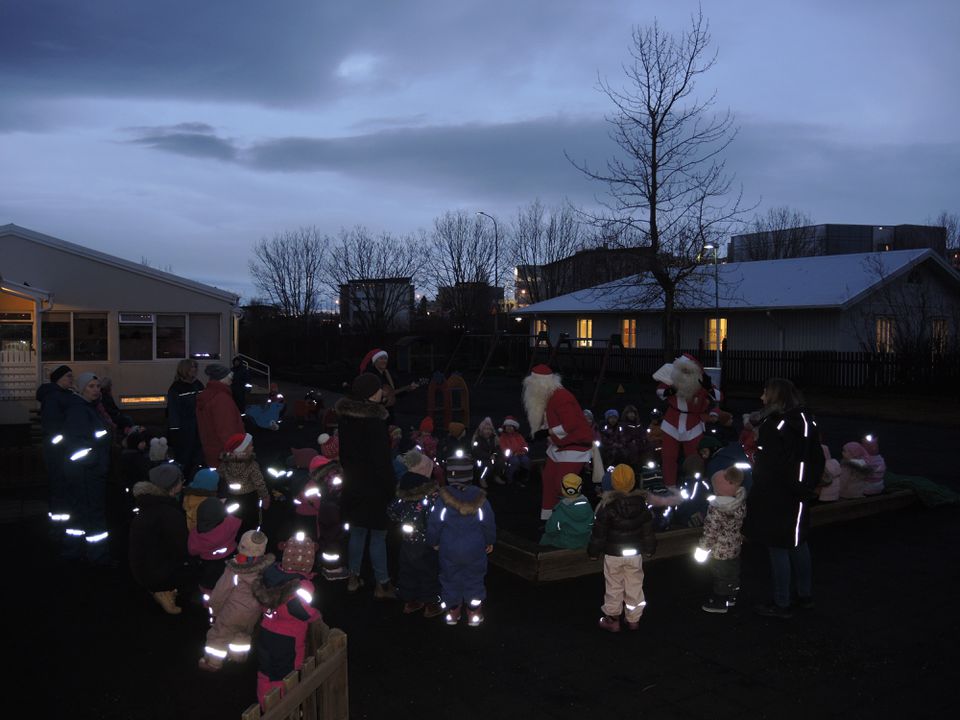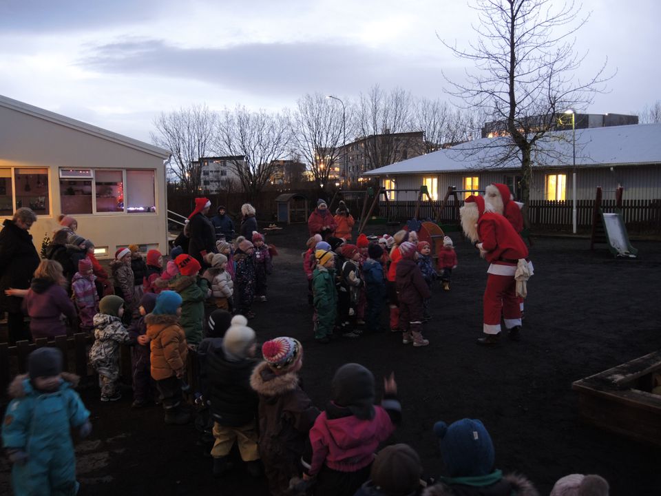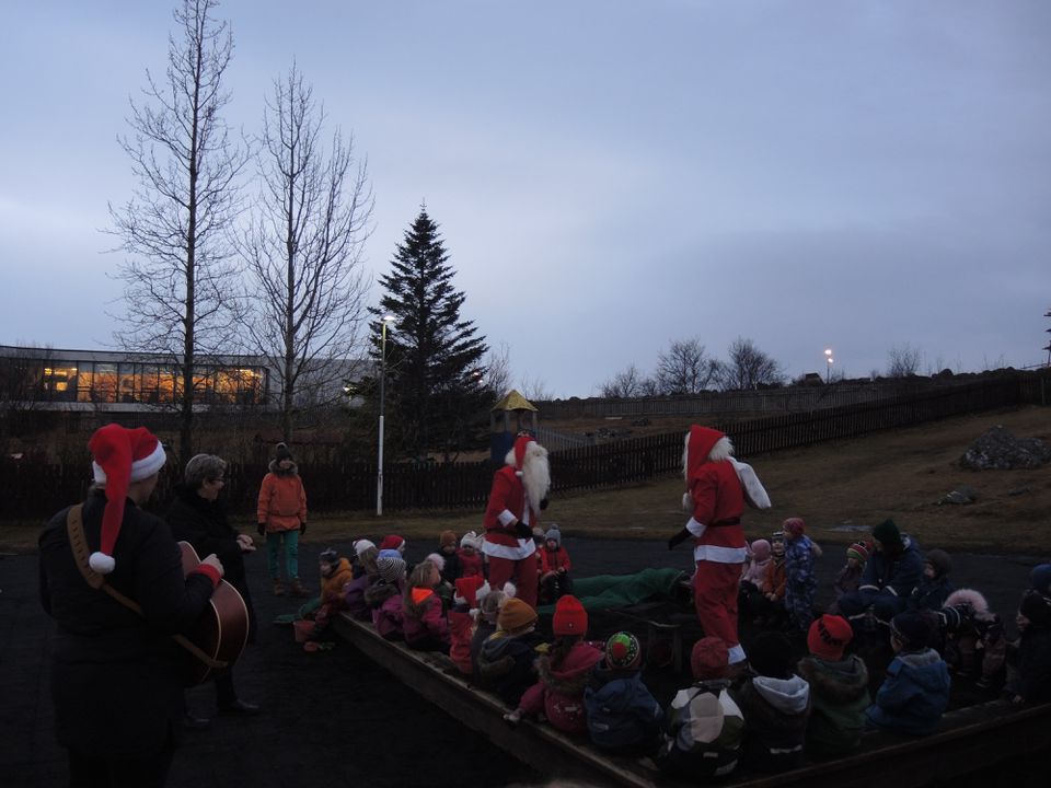 Föstudaginn 11. desember fengum við skemmtilega heimsókn frá þessum kátu sveinum. Þeir sungu með okkkur nokkur lög og svo var gengið í kringum sandkassann. Allir kátir og glaðir! Í síðustu viku fengum við svo til okkar brúðuleiksýninguna Pönnukakan hennar Grýlu, en það er hann Bernd sem er listamaðurinn á bakið við þessa frábæru sýningu.
